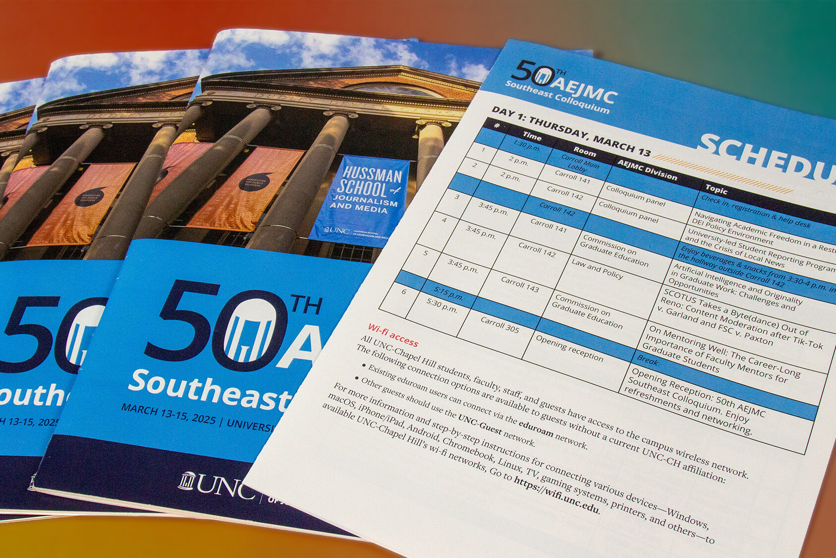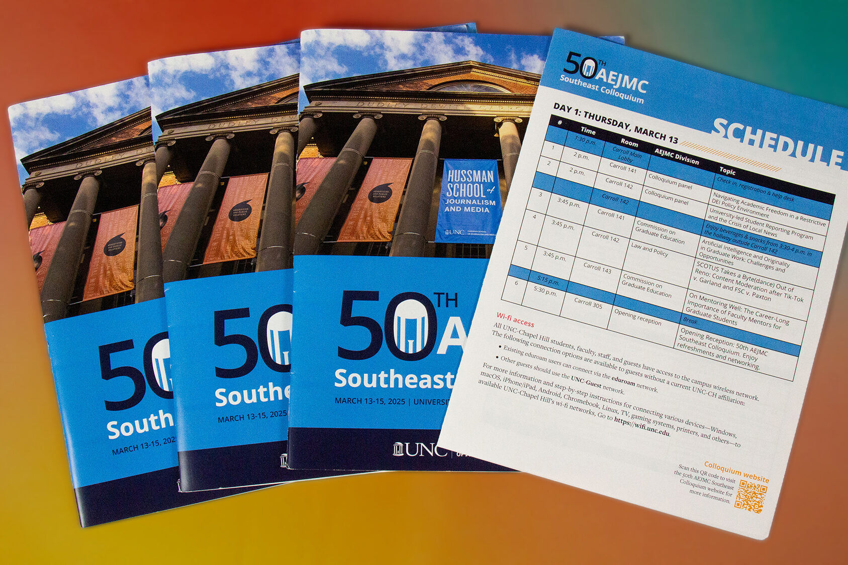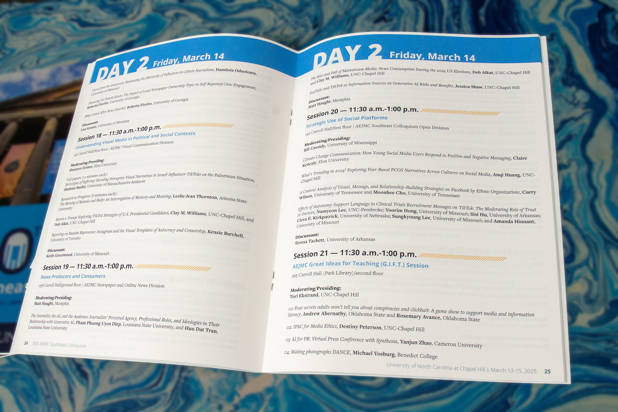 I designed the program booklet for AEJMC’s 50th Southeast Colloquium, a nonprofit, educational association of journalism and mass communication educators, students and media professionals that convened in Chapel Hill, NC to network and present groundbreaking research.